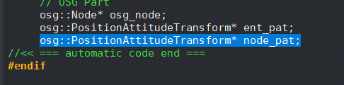 And in Declaration panel, add the following line: osg::PositionAttitudeTransform* node_pat;