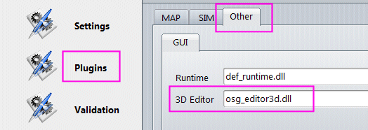 If this is checked, the OSG database is loaded and the scene is created in the plugin. In the Terrain Map, 3D View will automatically be selected so that the 3D editor will be shown as soon as the scenario is loaded.