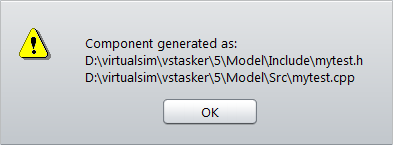 Built-in Models of vsTASKER have been created this way: designed into vsTASKER, tested, improved until they were complete enough to be extracted from the development database and converted into one header and its associated source file, ready to be compiled and added into the simulation engine library.