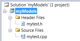 Then, we will move the mytest.h file into Model\Include\myModels and mytest.cpp into Model\Src\MyModels (you can also combine .h and .cpp into the same folder somewhere else).