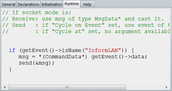 This part is called by tic(Event*)at the specified frequency. It is an automatic routine of the SockItem so, all data of the SockItem can be accessed here.