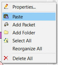 Pay attention to the Mode of the Packet definition. A Sending Out To IG mode can only be pasted into the Send section (top) while a Receiving from IG can only be pasted into the Receive section (bottom). Failing to do so will result in an error message: