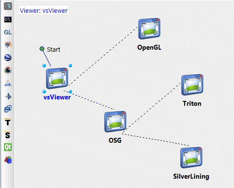 SimQt is a predefined Qt application, ready to embed vsTASKER simulation database (runtime and generated code) and providing 2D OpenGL map, 3D OSG view and the vsTASKER glut HMI based on sprites.