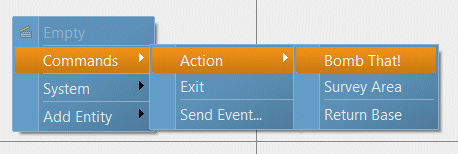 Scenario menu : At runtime (only), right clicking on the scenario map will display the
