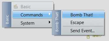 The Commands defined in the scenario can be triggered from the code (by raising the corresponding event) but most of the time, the purpose of defining a Command is to let the user select it from the GUI. vsTASKER offers two ways for using these commands: