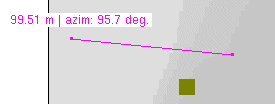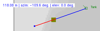Displays the azimuth line (orange vector) and the speed selector (blue anchor).