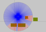 The center of the fan is dropped on the ground below it. For each sector, color change (blue/red) at the point where the terrain is blocking the view.