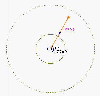 Plain and dashed circles represent minimum and maximum speed for the entity.