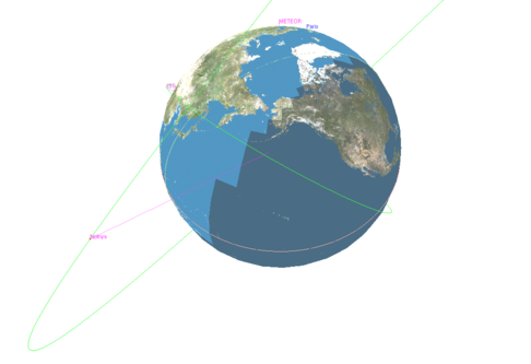 If the satellite holds a sensor (like IsoElevation component or any other Space sensor whose drawing is handled by a validation function), it will be displayed on the earth in yellow (see below).