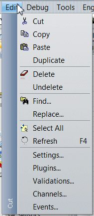 Paste: Copy from the clipboard to the database, where it should be copied, so according of its type. For example, if a Logic is in a clipboard, then, pasting it will add it as a new (or duplicated) logic, event if the user is focusing another category. After a paste, the clipboard still contain the items.
