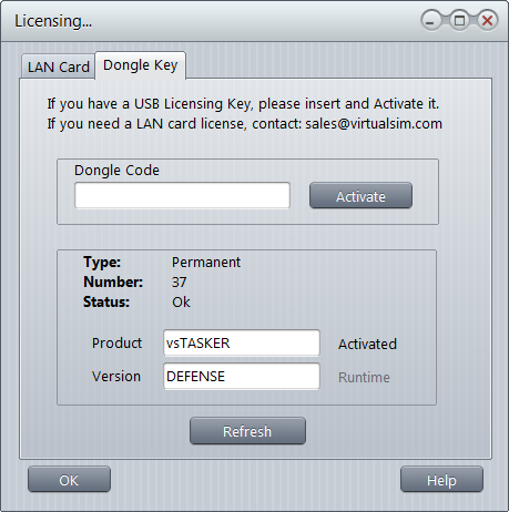 Dongle Key. The dongle contains the license type and the product code. They are not linked to a particular software package. If you buy 3 vsTASKER, you will receive three dongle keys and will be able to use any of them.