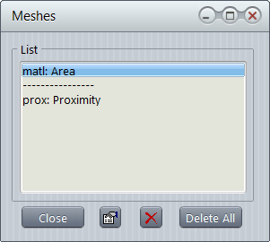 Double click the background to list all defined meshes.