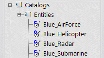 Although it is not mandatory to use catalogs at design time, as an entity can be created from a template or imported from the shared directory, using catalog entities is mandatory at runtime: adding a new entity into the scenario at runtime can only be done using duplication of an existing or catalog entity.