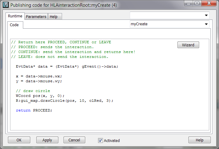 Then, the drawCircle runtime graphics function is called (so that to display a circle on the GUI map).