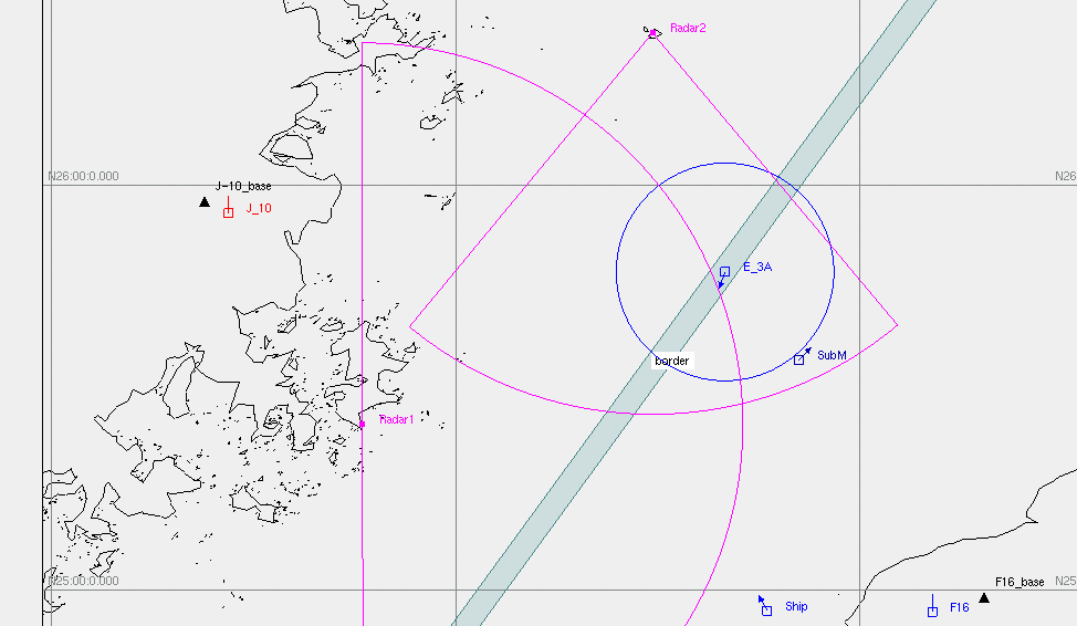 When J10 will be detected by E3-A, information will be sent to Ship that will try to protect E3-A by sending a missile against the intruder detected by E3-A.