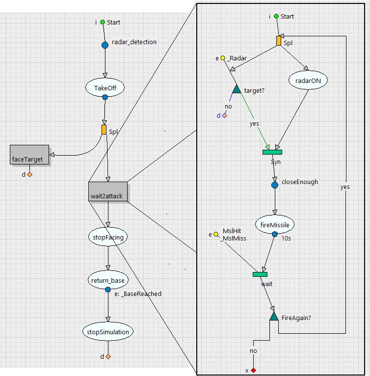 When the E3-A is detected by both Radar1 & Radar2, (see J10_logic, radar_detection), J10 will take-off and go for interception.