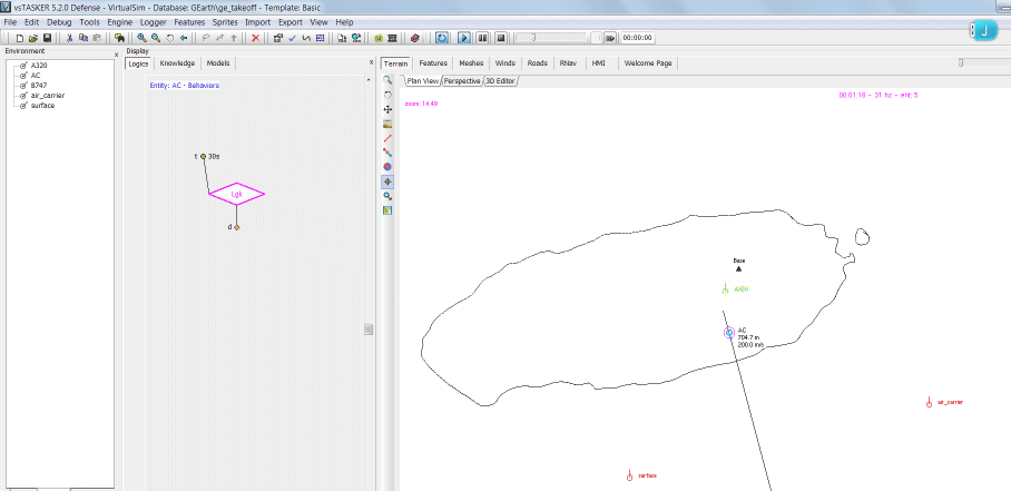 Start the simulation and select the Entity. The GE camera will immediately fly to face the Entity on the ground.