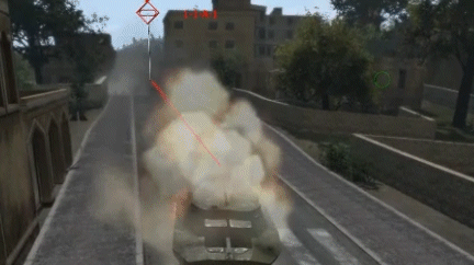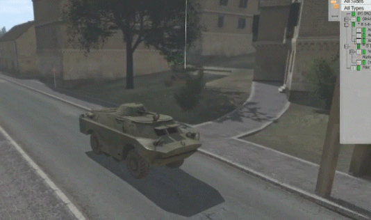 In this demo, a Brdm vehicle moving along a road is killed by an opponent tank.