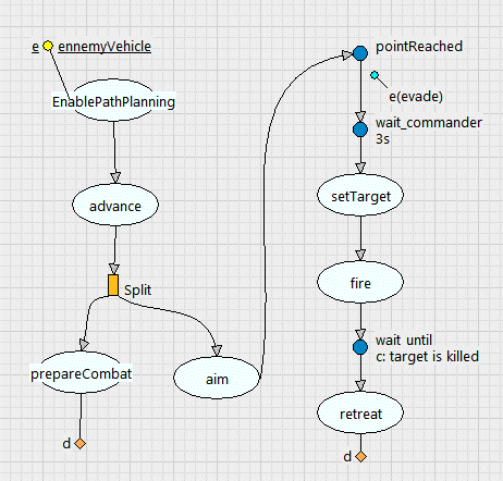Here is the opponent tank logic to engage combat when the Brdm is detected: