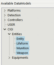In the Importer window, expand the CIGI list (if you do not have it, go back to 5) and select Entity, Lifeform, Munition and Weapon Data Models (use Ctrl key for multiple selection)