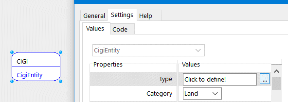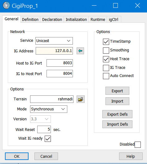 4- Open again the CIGI Property window and set the following: