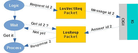 The principle retained to treat asynchronous response to request, without blocking the single thread of the simulation engine, is to give to a logic the task to talk to the IG.