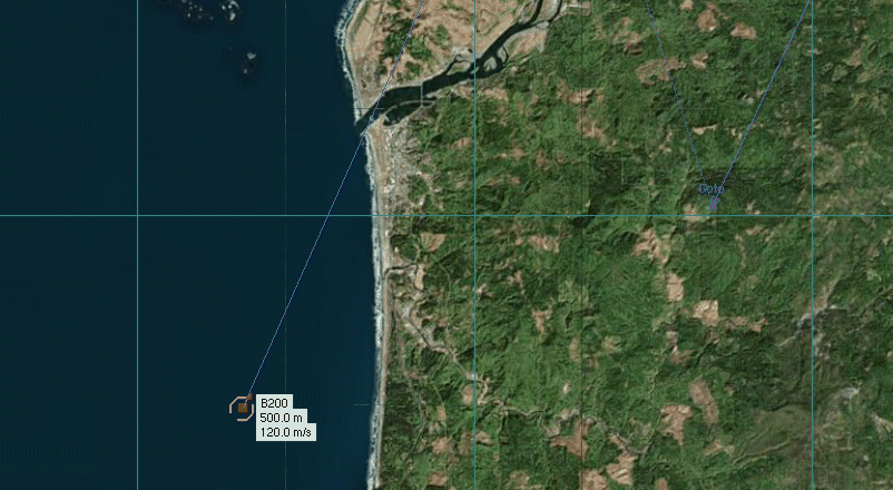 When the B-200 aircraft is flying and simulation RTC is running at 30hz, click on the aircraft symbol.