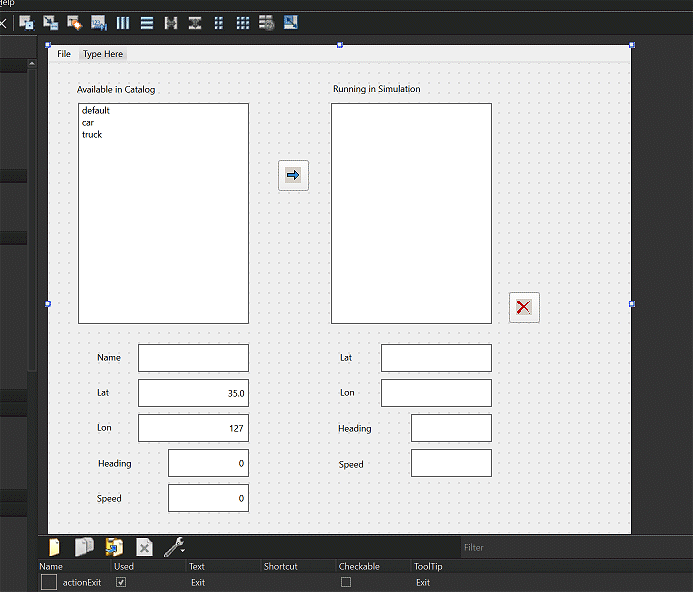 The database seems empty but it contains 3 entities in Catalog (default, car and truck) and one Logic (load) which is attached on the car and truck and displays on the console basic information about the entity (name, position, heading, speed).
