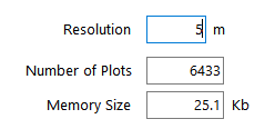 Now, specify the of each plot of the layer, in meters. The lower the resolution, the higher the number of plots and the memory used: