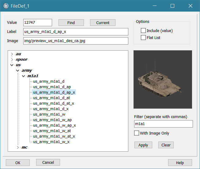 Then, open the us::army::m1a1 and select us_army_m1a1_d_ap_x :