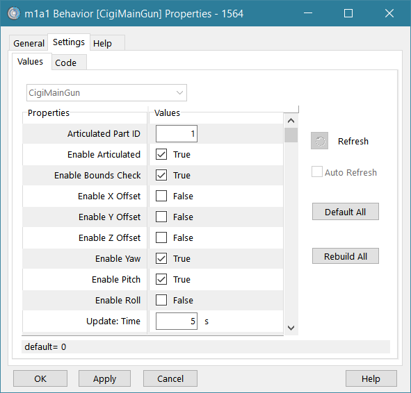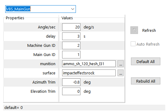 Then the VBS_MainGun component which will use the CigiArtPart above and provides data to the CIGI packets:
