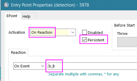 Then let's add one Entry Point and one Exit Point. Click on the green needle then click on the Task to add the EPoint then click on the red needle then click on the Task to add the XPoint.