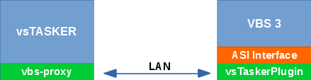 The vsTaskerPlugin gathers all vsTASKER entities in a local list and tries to maintain a consistency with the VBS engine. When necessary, it updates vsTASKER with messages sent through the LAN to vbs-proxy component.