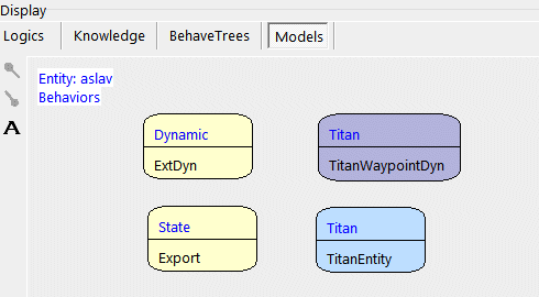 In case we want Titan dynamics to be used, we must add the ExtDyn component combined with the TitanWaypointDyn one. This way, vsTASKER will by driving entities by assigning waypoints and let Titan does the computation. The TitanWaypointDyn component will give instructions to Titan and update the position and attitude of the local entity in real-time, from Titan engine.