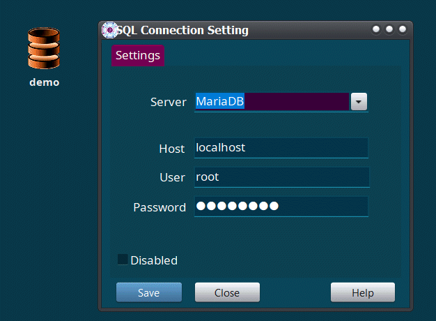 Now, start vsTASKER, open the SQL/test_mariadb database, and setup the SQL server: