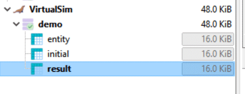 You can see them on HeidiSQL client once the simulation ends (you need to refresh or start a new session to see these tables).
