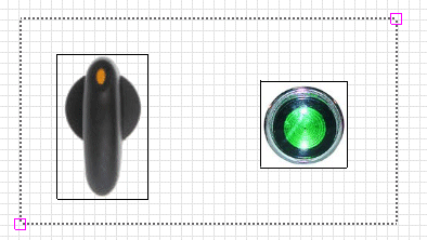 Once the lamp is created, set its position right to the knob, then click the runtime window area dashed line and move the square handle to enclose the two Sprites as below: