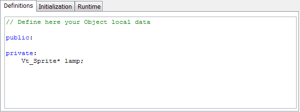 So, we define a Vt_Sprite pointer named lamp, in the Definition pane.