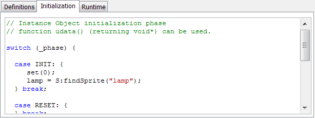 Then, we find the lamp pointer using the scenario method: lamp = S:findSprite("lamp");