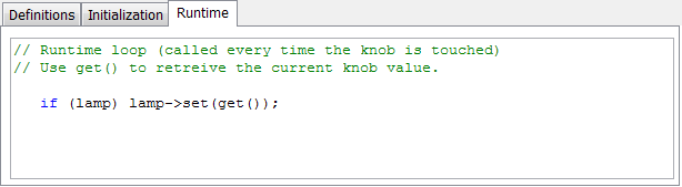 In the Initialization pane, we set the knob state to be 0: set(0);