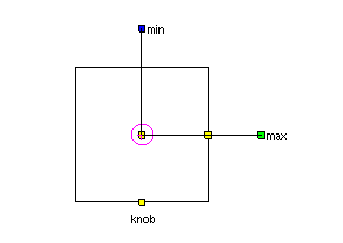 of the knob above the texture center as below and rotate the min and max handle like below: