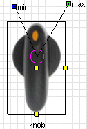 Now, let's select the Sprite pane and use the vertical toolbar to add the first input knob object:
