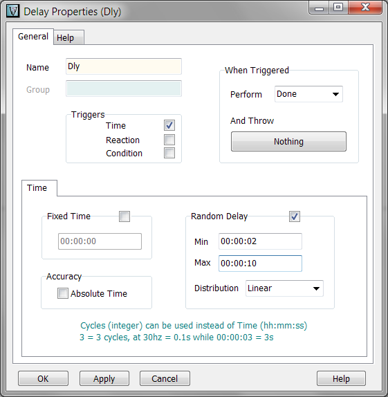 Here, we want to add a Random Time Delay to stop the logical flux for a random number of seconds before changing again the heading and the speed of the Entity.
