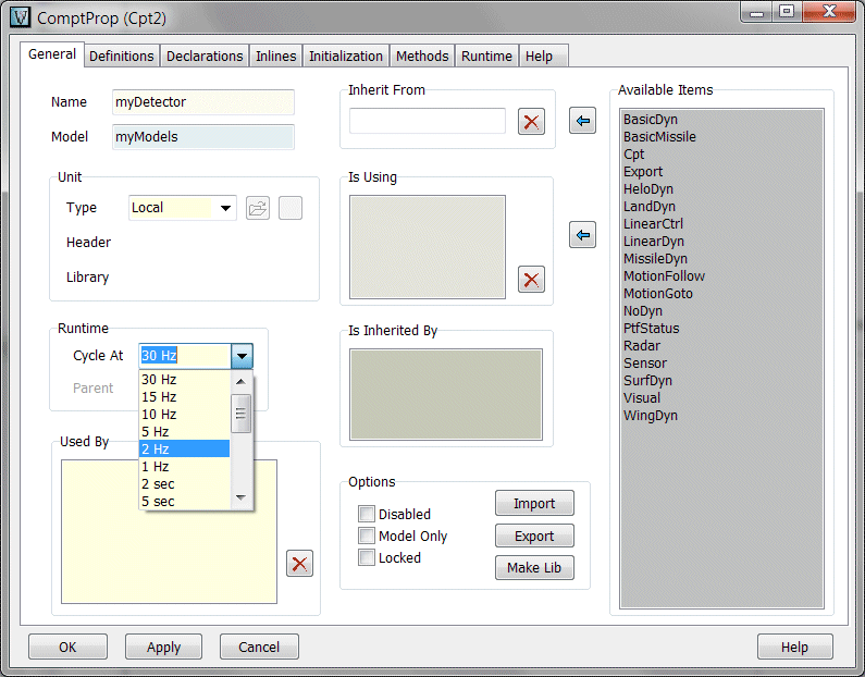 Set the name to myDetector and select 2 Hz in the Runtime Cycle at selector, as shown above.