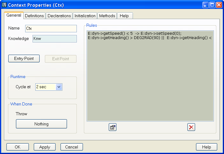 For this example, we will create a simple Knowledge that will constraint the basic entity of the previous example to zero the speed and heading when conditions are met.