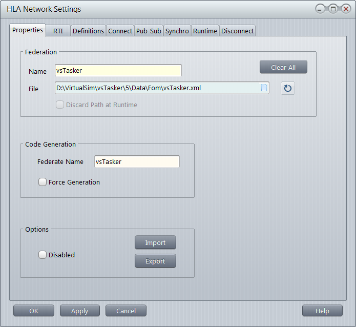 We will first open the HLA settings window by double clicking the HLA diagram part (or right click, then Settings)
