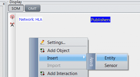 We will add first the publishing FedItem by right clicking into the Publishers part of the HLA diagram.