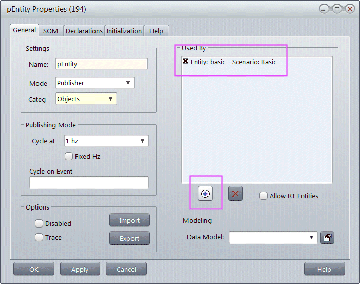 Finally, attach the entity to the Publisher FedItem, because the entity basic will be using it to broadcast its position, heading and speed through the RTI.