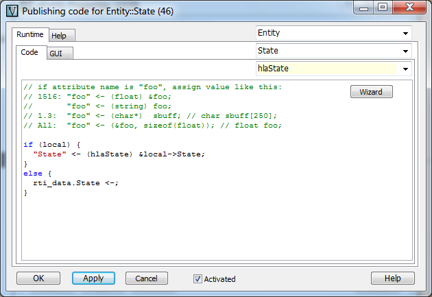 Here, we can see that if the local pointer has been correctly set to the entity hlaEntity object, then local->State will receive the data coming from the RTI, otherwise, rti_data will receive it (and the user will need to transfer it from the Object code).