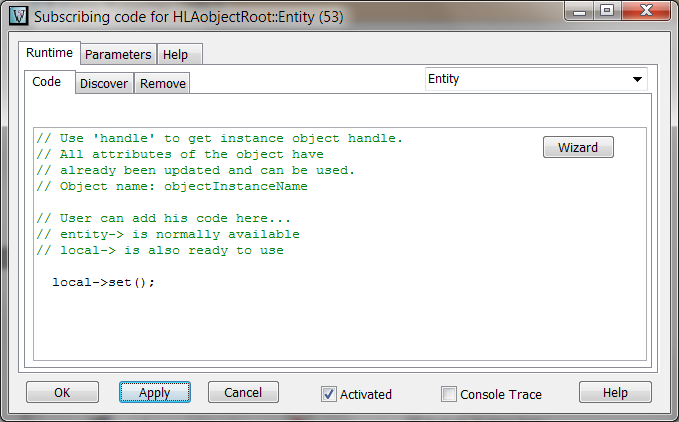 It is then time to copy the data from hlaEntity to internal entity structure, using the set()function defined in the hlaEntity DataModel.